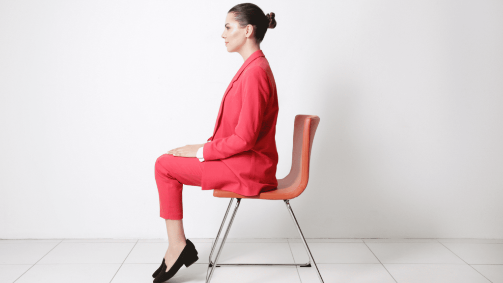 姿勢が悪いと、肩が前に出て胸が縮こまり、バストの位置が低く見えることがあります。